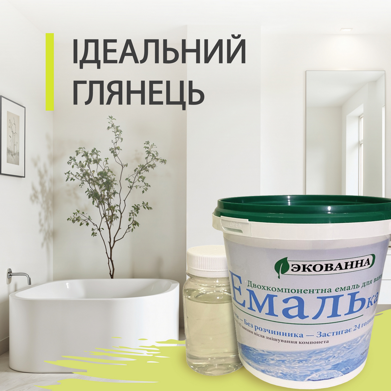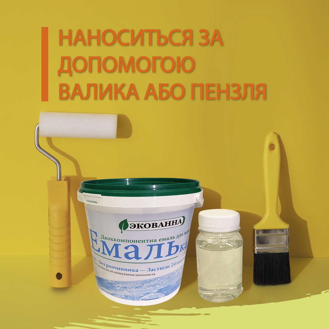 Емаль акрилова ЕкоЕмалька застосовується для фарбування сталевих, чавунних і акрилових ванн довжиною від 1,5 м до 1,7 м. Товщина фарбування в один шар.