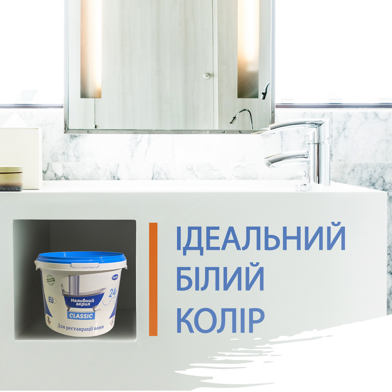 Для реставрації ванн використовують саме той набір, який потрібний для конкретного розміру. Немає потреби брати комплект 170 сантиметровий для ванни 150 сантиметрів. Акрилу достатньо, навіть трохи більше.