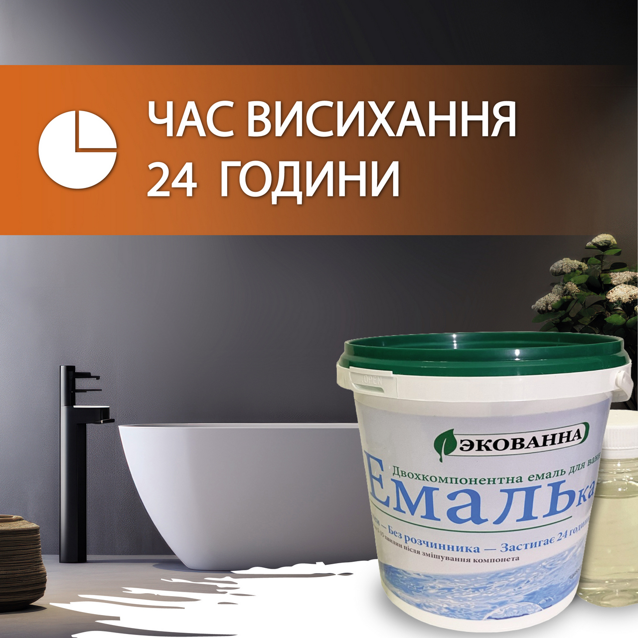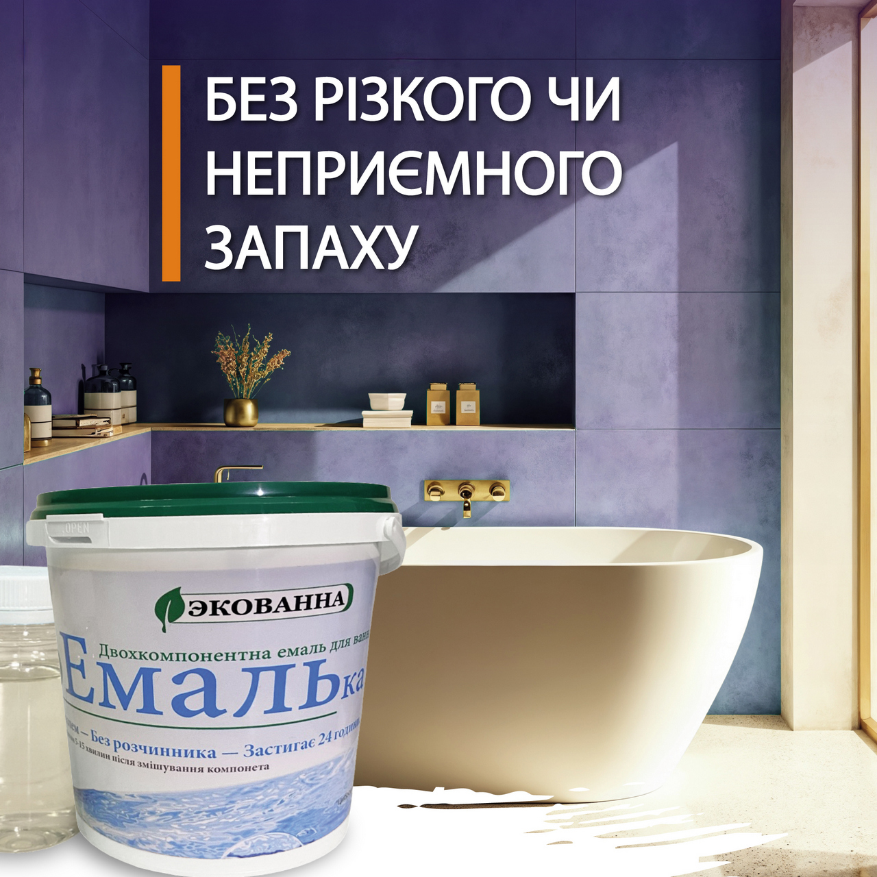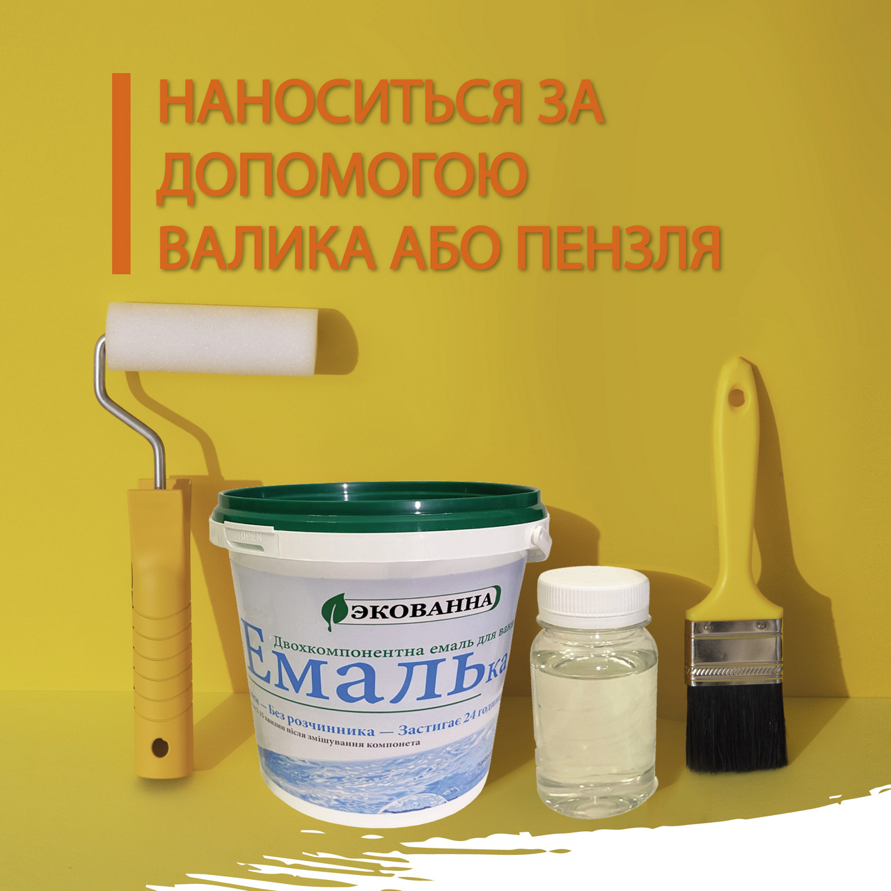 Емаль акрилова ЕкоЕмалька застосовується для фарбування сталевих, чавунних і акрилових ванн довжиною від 1,5 м до 1,7 м. Товщина фарбування в один шар.
