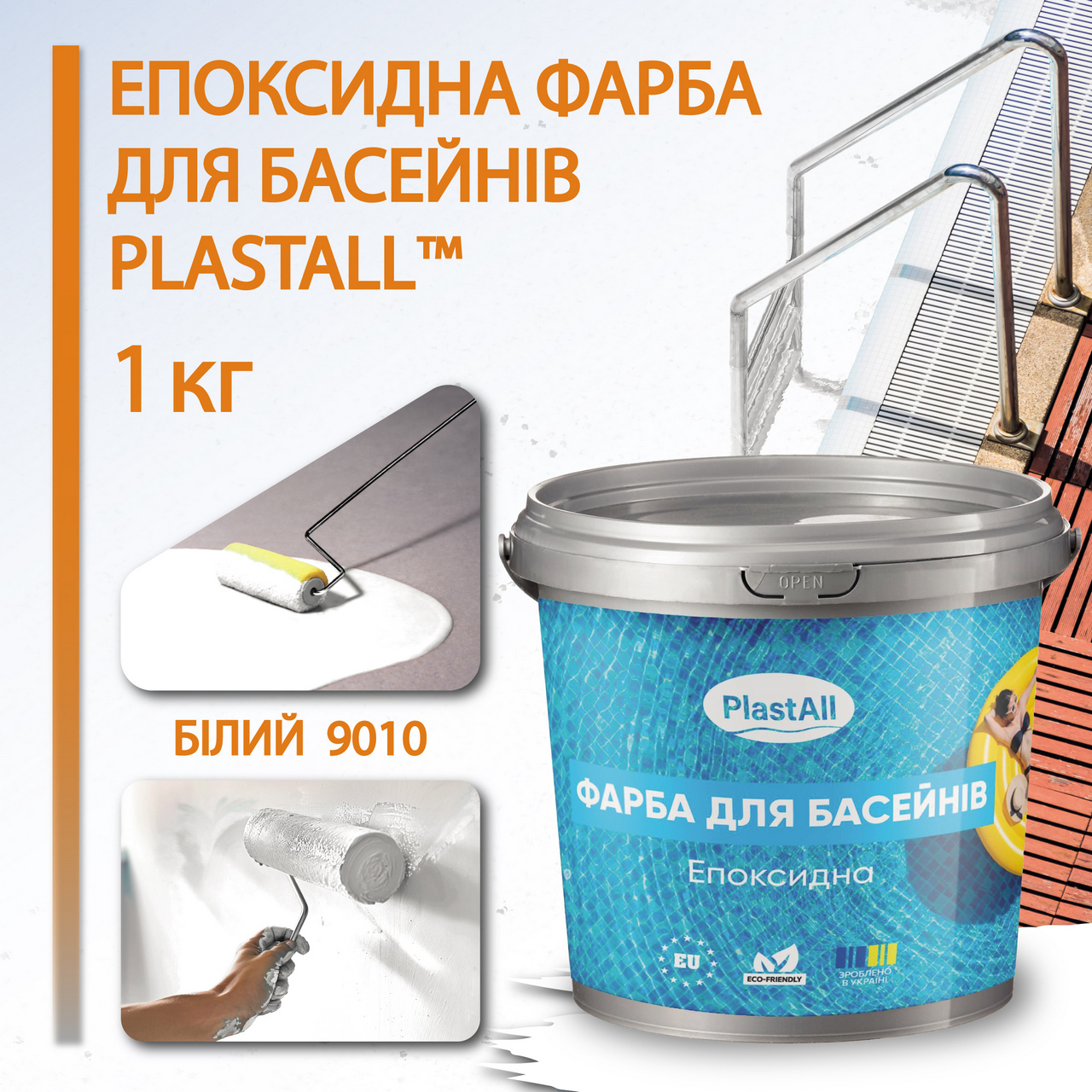 Найкращим рішенням є епоксидна фарба для басейну, оскільки вона створює водонепроникне, хімічно стійке покриття, не боїться хлору, постійного контакту з водою та механічних навантажень. Епоксидна фарба Plastall спеціально розроблена для басейнів із бетону та металу.