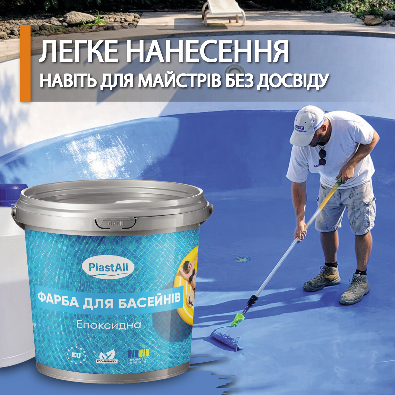 Найкращим рішенням є епоксидна фарба для басейну, оскільки вона створює водонепроникне, хімічно стійке покриття, не боїться хлору, постійного контакту з водою та механічних навантажень. Епоксидна фарба Plastall спеціально розроблена для басейнів із бетону та металу.