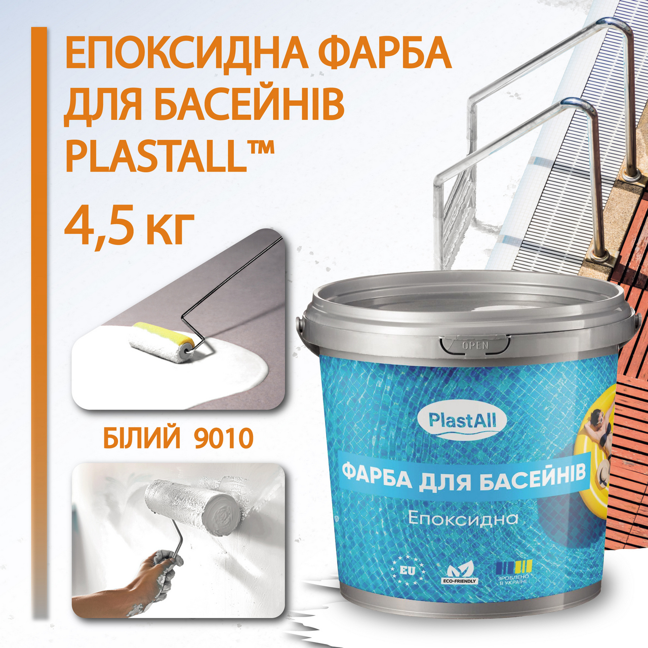 Найкращим рішенням є епоксидна фарба для басейну, оскільки вона створює водонепроникне, хімічно стійке покриття, не боїться хлору, постійного контакту з водою та механічних навантажень. Епоксидна фарба Plastall спеціально розроблена для басейнів із бетону та металу.